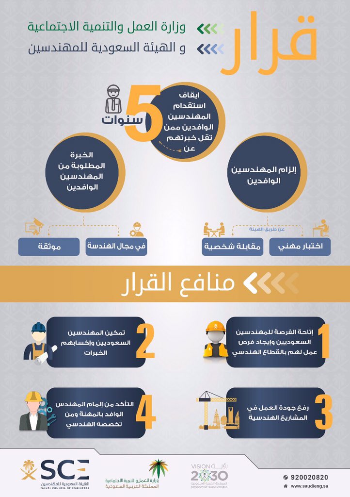 الهيئة السعودية للمهندسين On Twitter انفوجرافيك قرار إيقاف استقدام المهندسين الوافدين ممن تقل خبرتهم عن ٥ سنوات